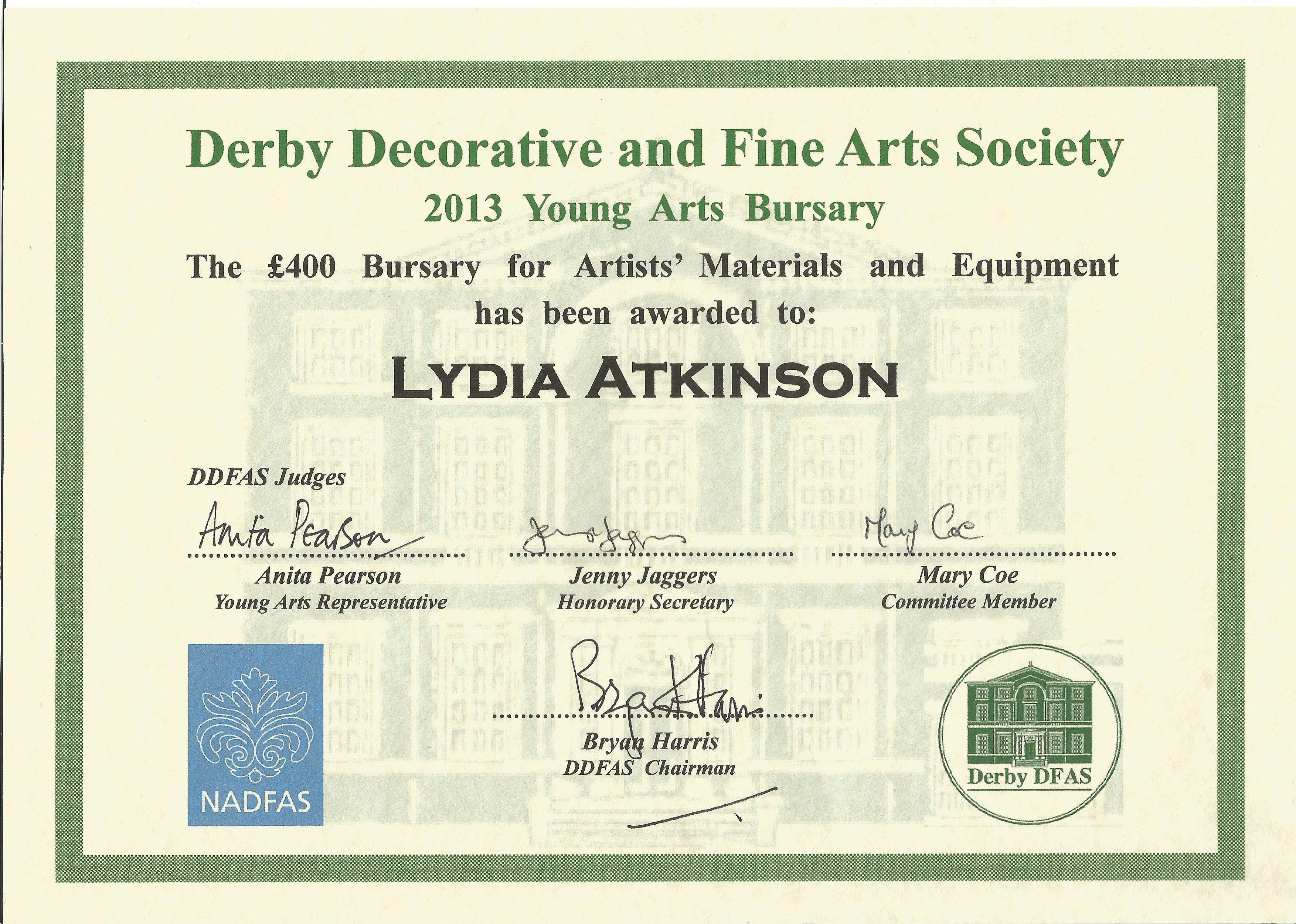 Derby Decorative and Fine Arts Society Bursary 2013
