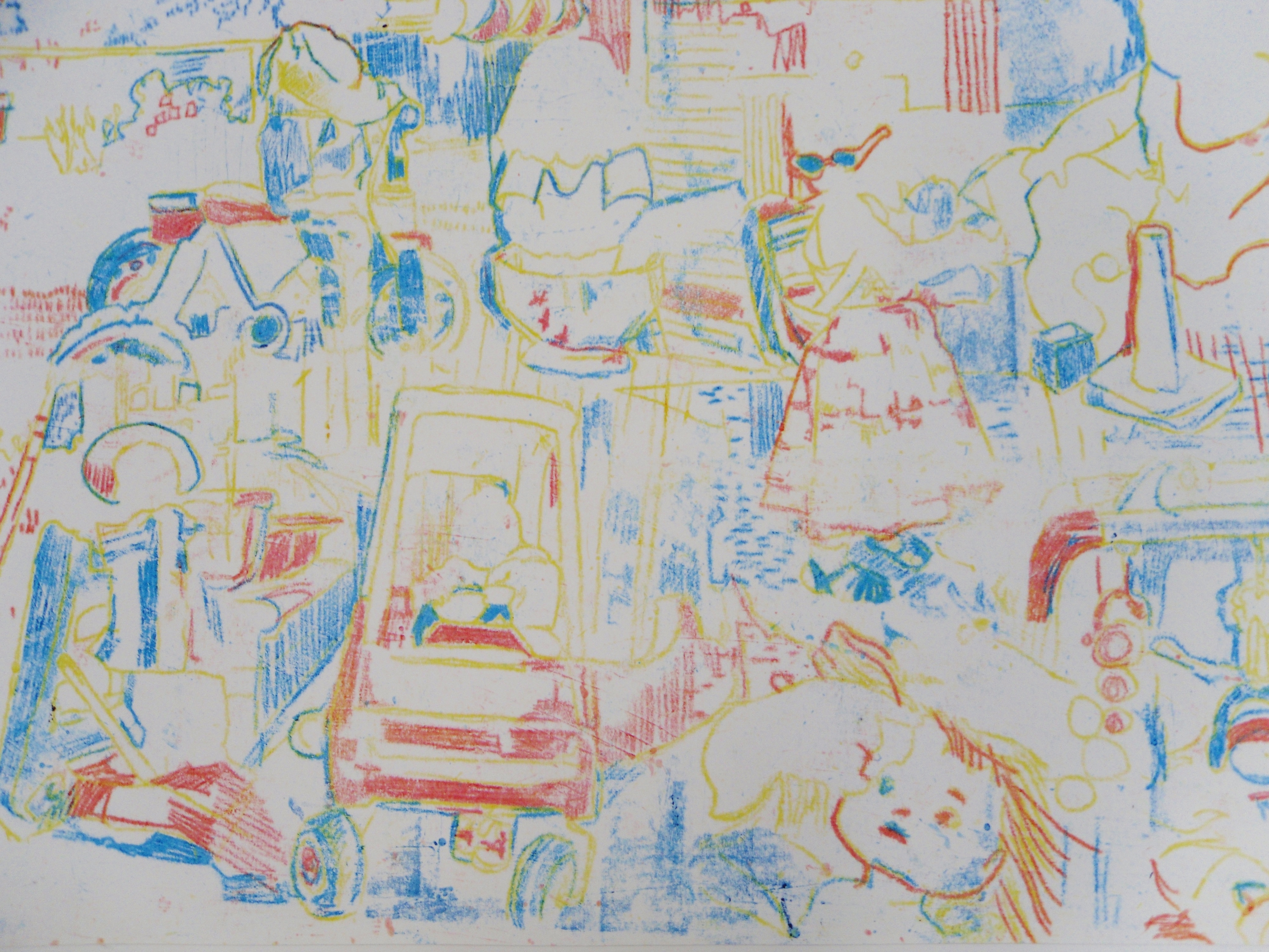 Oil pastel print, 2015. Looking at childhood memories and the importance of objects.