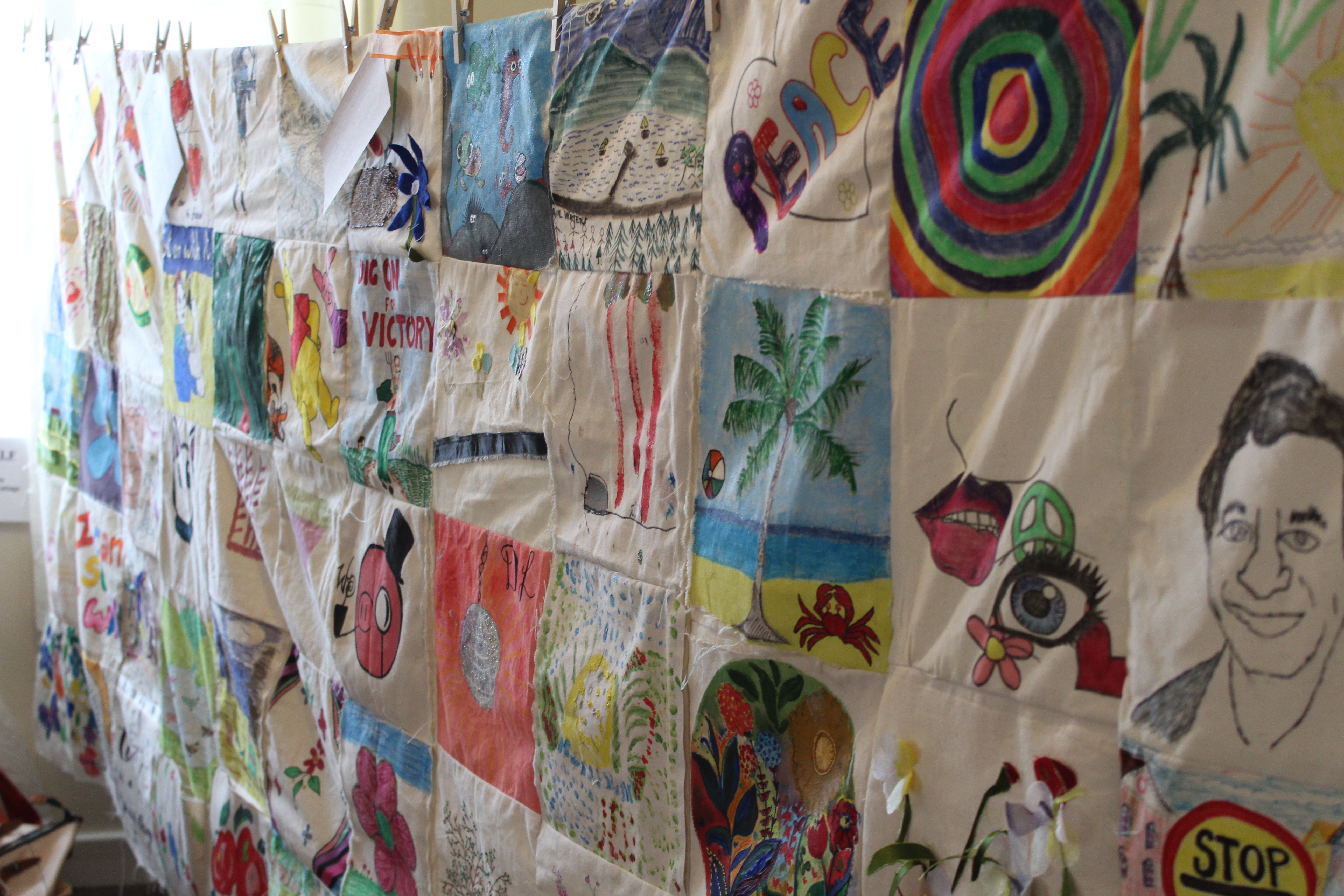 Each square is an expression of an individual’s stories, memories, feelings and creative exploration which has been cut, painted, coloured and stitched together in collaboration with myself and volunteer artists. Often, these works of art came from discussions we would have about their lives, families and passions. Some people knew exactly what they wanted to create, and did so without need for much support. Others were more cautious about expressing themselves, and needed more support from us as artists to engage in the project. No two squares are the same.